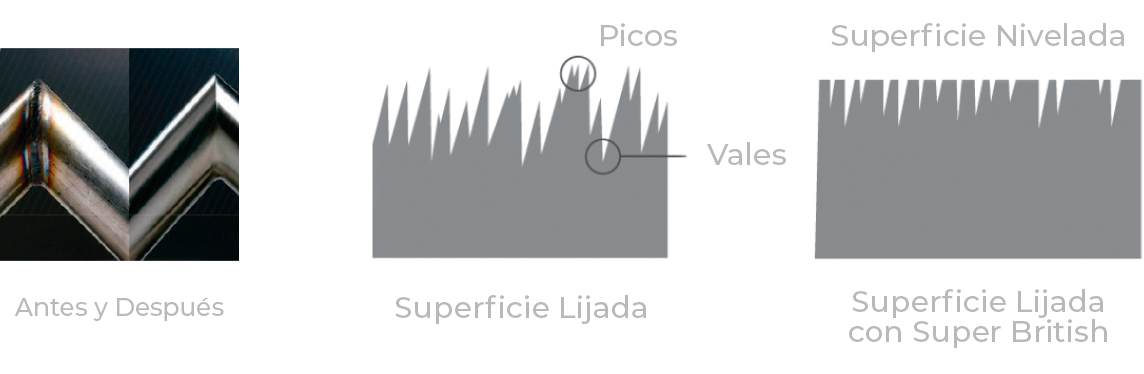 Utilizados después de operaciones con otros abrasivos, como lijas y discos de desbaste, los productos Super British proporcionan superficies más suaves y acabados más precisos, reemplazando con frecuencia los abrasivos convencionales.